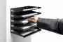 Sorteringsfag til sortering af dokumenter. Med 5 sektioner og etiketter til opmærkning af hver hylde Til dokumenter i A4 / Folio-format Fremstillet af pulverlakeret stål Velegnet til vægmontering Mål: 360 x 330 x 250 mm (B x H x D)