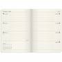 En stilren og eksklusiv kalender med fokus på tydelig planlægning. En klassisk kalender med cremefarvet papir med en uge pr. opslag. Bagerst er der ekstra sider til noteringer og en letoverskuelig årsplanner.