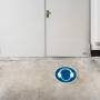 Registreret gulv sikkerhedsafmærkning til identifikation af farlige områder, opbevaringsrum, gangbroer m.m.. Registreret permanent påbudsskilt "Anvend hørebeskyttelse" M003 i henhold til ISO 7010. Selvklæbende til påsætning på indendørs gulve i lagerhaller, distributionscentre, produktionshaller m.m.. Slidstærk og hårdfør. Kompatibel med ISO 7010. Skridsikring R9 i henhold til DIN 51130. Mål: Ø 430 mm, tykkelse 0,4 mm