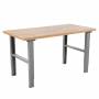 Arbejdsbord IWE2 med bredde 1600 mm, dybde 800 mm og 35 mm eg parkett bordplade som giver arbejdshøjde 740 - 1015 mm.IWE2 er et kraftfuldt arbejdsbord til tung håndtering, med manuel højdejustering mellem 740 - 1015 mm. Bordet leveres med en slidstærk bordplade til at klare tungt og snavset arbejde. Den maksimale belastning er 500 kg jævnt fordelt over bordets overflade. Leveres komplet med benbøjler.
