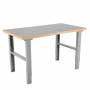 Arbejdsbord IWE2 med bredde 2000 mm, dybde 800 mm og 35 mm vinyl bordplade som giver arbejdshøjde 740 - 1015 mm.IWE2 er et kraftfuldt arbejdsbord til tung håndtering, med manuel højdejustering mellem 740 - 1015 mm. Bordet leveres med en slidstærk bordplade til at klare tungt og snavset arbejde. Den maksimale belastning er 500 kg jævnt fordelt over bordets overflade. Leveres komplet med benbøjler.
