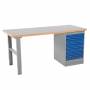 Arbejdsbord IWE4 inkluderet skuffesektion med 6 skuffer. Bordet har bredde 2000 mm, dybde 800 mm og 35 mm board bordplade som giver arbejdshøjde 905 mm.IWE4 er et kraftfuldt arbejdsbord inklusiv skuffesektion med seks skuffer og 1 benbuk. Kapacitet for skufferne er 40 kg pr. skuffe. Værkstedsbænken er forsynet med en slidstærk bordplade til at klare tungt og snavset arbejde. Den maksimale belastning er 500 kg jævnt fordelt over bordets overflade. Leveres komplet med skuffesektion og benstativ.