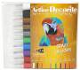 Artline Decorite 10-pack Decorite penne med 1,0 mm rund spids til dekorering, farvelægning og layering. Decorite-serien er tilgængelig i tre spidstyper; chisel, rund og børste, og farver i standard, pastel og metallic nyancer. Decorite er perfekt til mørkt-farvet pap, papir, træ, keramik, porcelæn, metal, plast, glas, og kan let vaskes af ikke-porøse overflader med vand. Indeholder vandbaseret pigment blæk uden Xylen.