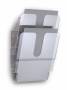 Brochureholder, brochurestativ, postbakke - FLEXIPLUS er en serie af pladsbesparende, fleksible og vægmonterede holdere til brochurer, magasiner, formularer og anden information i A4-format. Hver bakke har en kapacitet på 24 mm tykke bundter. Dette er et komplet sæt med 2 bakker i stående format, hvor bakkerne kan sættes sammen eller bruges hver for sig. Der medfølger et sæt skruer og rawplugs. Hvert rum måler 25x27,5x3,5 cm (BxHxD). Monteret i en vinkel fra væggen bygger den 10 cm og har en bredde på 25 cm og er 36 cm høj, når begge rum er samlet. Kan udvides med flere rum efter behov ved at hægte rummene ind efter hinanden.