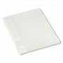 Tilbudsmappe med klar forside og farvet ryg og bagside. Med split, overligger og etiketstrimmel. Fremstillet i slidst?rk PP-folie.