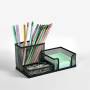 Beskrivelse af Blyantholder og Visitkortholder Sort Nyt produkt i vores Mesh-serie - en stilfuld og praktisk kombination af penneholder og notesblokholder i metalnet.