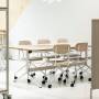 Bord Atlas 1134 med hvidt rørstel og 23 mm bordplade 2200x1000mm i eg højtrykslaminat med ABS-kantlister. Regulerbare fødder for at kompensere for ujævne gulve. Forberedt for kabelgenenmførsel.Større borde kan produceres efter forespørgsel. Passer fint sammen med vore stole Atlas 2111, 2112 eller taburet 2117, 2118.