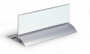 Bordskilteholder presenter de luxe 61x210 mm stilren bordskilte i klar akryl, læseligt fra begge sider. Fod af aluminium. 2 stk/pk