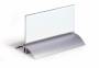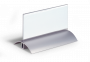 Bordskilteholder presenter de luxe 61x150 mm stilren bordskilte i klar akryl, læseligt fra begge sider. Fod af aluminium. 2 stk/pk