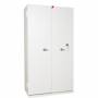 Brandsikkert dokumentskab til tryg opbevaring af forretningskritiske dokumenter, personalearkiv osv. Dokumentskabet har 4 hylder til opbevaring af arkivbokse eller andre papirer. Dette brandsikre dokumentskabs indvendige mål er (hxbxd) 1738 x 908 x 320 mm og er testet og godkendt i Brandklasse 90P. Når arkivskabe er defineret som brandsikre skabe, betyder det at de er brandisolerede og at de tåler en brand uden at temperaturen inde i skabet overstiger de fastsatte grænser. Skabene testes og godkendes efter normen NT Fire 017, hvor skabet bliver udsat for en udvendig varmebelastning på op mod 1000 grader. Kravet er at temperaturforøgelsen inde i arkivskuffen ikke skal overstige 150 grader. Testen klassificerer produktet som 60P for godkendt i 60 minutters brandtest for papir og 120P for godkendt 120 minutters brandtest for papir. Så er det op til virksomheden at vurdere om der kræves brandsikre skabe som er godkendt efter 1 eller 2 timers brandtest.