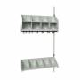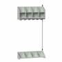 BST kombination A. Garderobe påbygningssektion med 4 pladser. Garderobe- og skohylde med skillevægge i pulverlakeret lysegrå metal, RAL 7035. 1 stk. vægskinne og garderobestang med 12 ankerkroge. Pladsbredde 250 mm og totalbredde 1015 mm.
