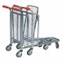 Butiks- eller lagervogn, praktisk, stabelbar til effektiv opfyldning af hylder, transport af smågods osv. Vognen er helgalvaniseret, stabil og smidig, med løftbar overhylde, som på grund af sin helsvejste konstruktion kan klare en belastning på hele 300 kg. Håndtaget er plastbeklædt og behageligt at betjene. Vognen har 4 stk. Ø125 mm drejelige gummihjul med kugleleje, der giver en støjsvag og nem håndtering.