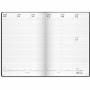 Kalenderen er indbundet med et omslag i rød vinyl, som giver den et flot og enkelt udseende. Kalenderen er inddelt med en uge pr. opslag og indeholder et funktionelt, overskueligt og timeopdelt kalenderskema fra kl. 8-18. Kalenderskemaet er designet med masser af linjer, så der er plads til at holde styr på ugens planer og aftaler. Dertil finder du en tidslinje og månedsoversigt nederst på hvert opslag, årsoversigter for tre år, særtjenestenumre og telefonselvvalg, adresse- og telefonregister samt et hæfte til fødselsdage og mærkedage indsat bagerst i en lomme.
