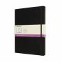 Moleskine Notebook, Large Double Layout. Med denne klassiske notesbog er der plads til både ord og illustrationer på et og samme opslag. Sort hard cover 19x25cm, Blanke & Linjerede sider, 240 sider, Bogmærke, Elastisk lukning, Inderlomme til løse notater, 70-grams elfenbensfarvet papir, FSC-certificeret.