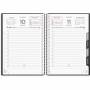 Klassisk spiralkalender. Kalenderen er spiralbundet med et omslag i hård PP-plast, hvilket giver kalenderen et enkelt udseende. Kalenderen er inddelt med en dag pr. side og indeholder et kalenderskema med halvtimeinddeling fra kl. 8-20, så du nemt kan danne dig et overblik over dagens planer og aftaler. Dertil finder en udfoldelig årsoversigt, masser af skriveplads, praktiske informationer samt hjørneperforering og månedsregister, som sikrer hurtige opslag i kalenderen.