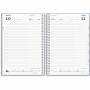Dagkalender med en farvet forside. Kalenderen er spiralbundet med et omslag i tekstilpræg, hvilket giver kalenderen et flot og enkelt udseende. Kalenderen er inddelt med en dag pr. side og indeholder et timeopdelt kalenderskema fra kl. 8-18 i moderne layout, så du nemt kan danne dig et overblik over dagens planer og aftaler. Dertil finder du en tidslinje og månedsoversigt nederst på hvert opslag, en udfoldelig årsoversigt, masser af praktisk information, stickerark samt en lomme til løse papirer bagerst i kalenderen.