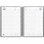Dagkalender med en matsort forside. Kalenderen er spiralbundet med et omslag i genbrugskarton og holdes lukket med en sort elastik. Kalenderen er inddelt med en dag pr. side og indeholder et timeopdelt kalenderskema fra kl. 8-18 i moderne layout, så du nemt kan danne dig et overblik over dagens planer og aftaler. Dertil finder du en tidslinje og månedsoversigt nederst på hvert opslag, en udfoldelig årsoversigt, masser af praktisk information, stickerark samt en lomme til løse papirer bagerst i kalenderen.