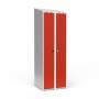Dobbeltskab/parskab 300+300 mm Skråt tag 2-søjlet Parvis lås Rød dør Greb for hængelås