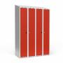 Dobbeltskab/parskab 300+300 mm Skråt tag 4-søjlet Parvis lås Rød dør Greb for hængelås