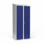 Dobbeltskab/parskab 400+400 mm Skråt tag 2-søjlet Parvis lås Blå dør Greb for hængelås
