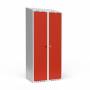 Dobbeltskab/parskab 400+400 mm Skråt tag 2-søjlet Parvis lås Rød dør Cylinderlås