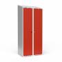 Dobbeltskab/parskab 400+400 mm Skråt tag 2-søjlet Parvis lås Rød dør Greb for hængelås