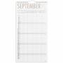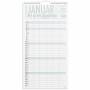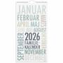 Familiekalender i karton og trendy design til vægophæng. Vægkalenderen er spiralindbundet og har skiftende farver og tekster og kan bruges som aktivitetskalender for hele familien. Hver måned er opdelt i 6 kolonner, så hvert familiemedlem har sin egen kolonne og skriveplads til at notere aktiviteter og aftaler.