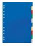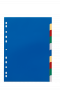10-delt faneblad i pp-plast med kulørte faneblade. Fortrykt kartonforblad med skriveområde. Universalhullet. A4 format. Forbladet kan udskrives med gratis skabelon på www.duraprint.dk