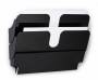 Brochureholder, brochurestativ, postbakke - FLEXIPLUS er en serie af pladsbesparende, fleksible og vægmonterede holdere til brochurer, magasiner, formularer og anden information i A4-format. Hver bakke har en kapacitet på 24 mm tykke bundter. Dette er et komplet sæt med 2 bakker i liggende format, hvor bakkerne kan sættes sammen eller bruges hver for sig. Der medfølger et sæt skruer og rawplugs. Hvert rum måler 34x19,5x3,5 cm (BxHxD). Monteret i en vinkel fra væggen bygger den 10 cm og har en bredde på 34 cm og er 25 cm høj, når begge rum er samlet. Kan udvides med flere rum efter behov ved at hægte rummene ind efter hinanden.