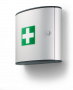 Praktisk førstehjælpsskab i flot design af børstet aluminium. To svingbare fag til opbevaring af førstehjælpsartikler. Skabet kan låses og der medfølger to nøgler. Leveres med førstehjælpssortiment såsom plastre, kompresser, elastikbind, saks, handsker mv. Mål 280 x 302 x 118 mm. (HxBxD).