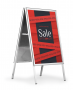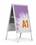 Beskrivelse af Gadeskilt fold outdoor a1 Sammenklappeligt, dobbeltsidet gadeskilt til A1-format. Vejrbestandigt takket være UV-stabil frontplast og gummitætning, som beskytter mod vand.