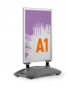 Gadeskilt heavy base outdoor a1 Dobbeltsidet gadeskilt med stabil base til A1-format. Vejrbestandigt takket være UV-stabil frontplast og gummitætning, som beskytter mod vand.
