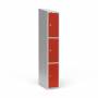 Garderobeskab 1x300 mm Skråt tag 3 rum i højden Rød dør Greb for hængelås