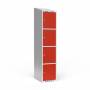 Garderobeskab 1x400 mm Skråt tag 4 rum i højden Rød dør Cylinderlås