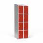 Garderobeskab 2x300 mm Skråt tag 4 rum i højden Rød dør Cylinderlås