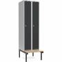 Garderobeskab 2x300mm m/lige tag, antracit dør med greb for hængelås og siddebænk
