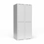 Helsvejst garderobeskab, 2x400 mm med lige tag. 2 rum i højden, lys grå kabinet (RAL 7035) og lys grå dør (RAL 7035), pulverlakeret stålplade. Levereres med færdigmonteret cylinderlås. Indretning er komplet med bøjlestang og 2 stk. ankerkroge. Indbygget ventilation i skabets front, øverst og nederst. Totalmål (b x d x h) 800 x 550 x 1752 mm