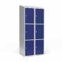 Garderobeskab 2x400 mm Skråt tag 3 rum i højden Blå dør Greb for hængelås