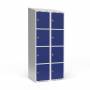 Garderobeskab 2x400 mm Skråt tag 4 rum i højden Blå dør Greb for hængelås