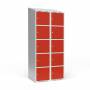 Garderobeskab 2x400 mm Skråt tag 5 rum i højden Rød dør Cylinderlås
