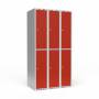 Garderobeskab 3x300 mm Lige tag 2 rum i højden Rød dør Cylinderlås