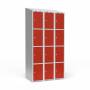 Garderobeskab 3x300 mm Skråt tag 4 rum i højden Rød dør Cylinderlås