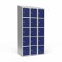 Garderobeskab 3x300 mm Skråt tag 5 rum i højden Blå dør Greb for hængelås