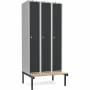 Garderobeskab 3x300mm m/lige tag, antracit dør med greb for hængelås og siddebænk