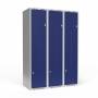 Garderobeskab 3x400 mm Lige tag 2-delt søjle Z-dør Blå dør Greb for hængelås