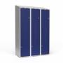 Garderobeskab 3x400 mm Skråt tag 2-delt søjle Z-dør Blå dør Cylinderlås