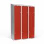 Garderobeskab 3x400 mm Skråt tag 2-delt søjle Z-dør Rød dør Greb for hængelås