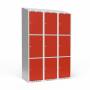 Garderobeskab 3x400 mm Skråt tag 3 rum i højden Rød dør Cylinderlås