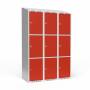 Garderobeskab 3x400 mm Skråt tag 3 rum i højden Rød dør Greb for hængelås