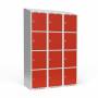 Garderobeskab 3x400 mm Skråt tag 4 rum i højden Rød dør Greb for hængelås